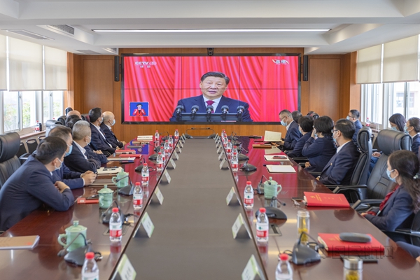 浙江省机场集团所属各机场航站楼、场区、办公楼等公共场所的电子屏幕实时播放大会开幕式。各基层党组织因地制宜,利用党群服务中心、党员活动室、岗前准备室等阵地,以灵活多样的方式,组织党员、群众收听收看开幕式。同时结合实际情况,组织隔离、居家监测、岗位间歇等团员青年因地制宜、灵活多样地收听收看,确保及时跟进学、全员覆盖学。在机场集团会议室,集团党委组织集团总部各职能部门、直属机构负责人等集中收看了党的二十大开幕盛况,认真聆听学习习近平总书记代表十九届中央委员会向大会作的报告。开幕式结束后,集团党委书记、董事长詹敏就下一步全面深入学习贯彻党的二十大精神作了部署,要求全集团把学习贯彻党的二十大精神作为当前和今后一个时期的首要政治任务和头等大事,把思想和行动自觉统一到党的二十大精神上来,迅速在全集团掀起全员参与的学习宣传热潮。
