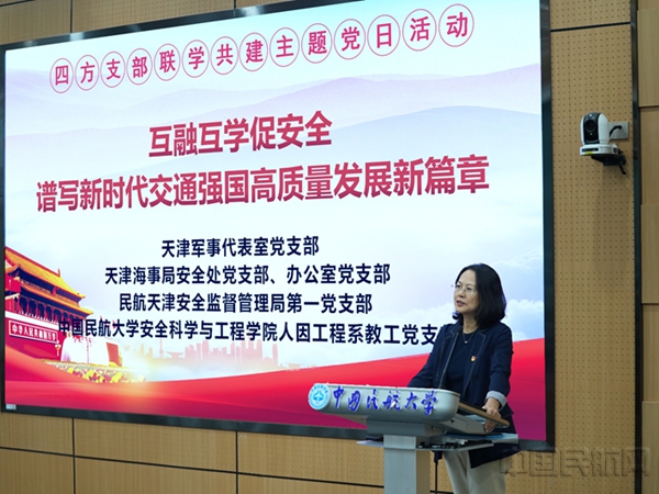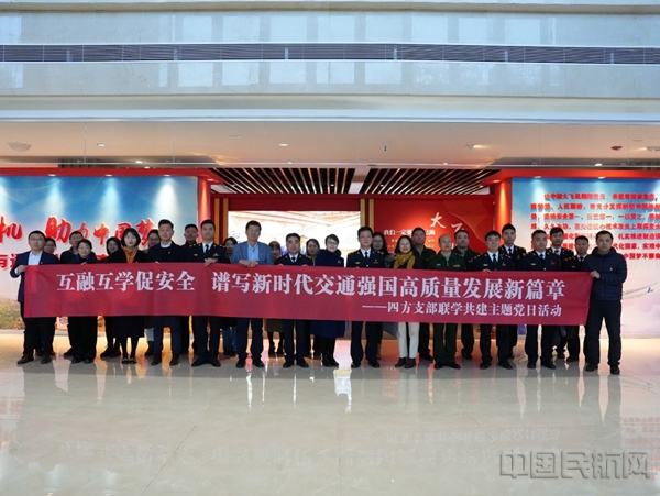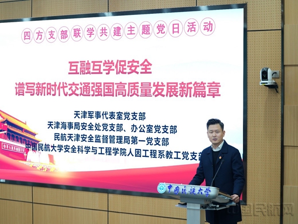 《中国民航报》、中国民航网 记者张丰蘩 报道:11月17日,民航天津监管局第一党支部与天津海事局安全处办公室党支部、天津军事代表室党支部、民航大学安全科学与工程学院人因工程系教工党支部,联合开展了四方支部联学共建主题党日活动。来自四家单位40余名党员相聚民航大学校区,紧密围绕学习贯彻习近平新时代中国特色社会主义思想,聚焦“互融互学促安全、谱写新时代交通强国高质量发展新篇章”主题,开展集体学习、专题研讨和参观调研。