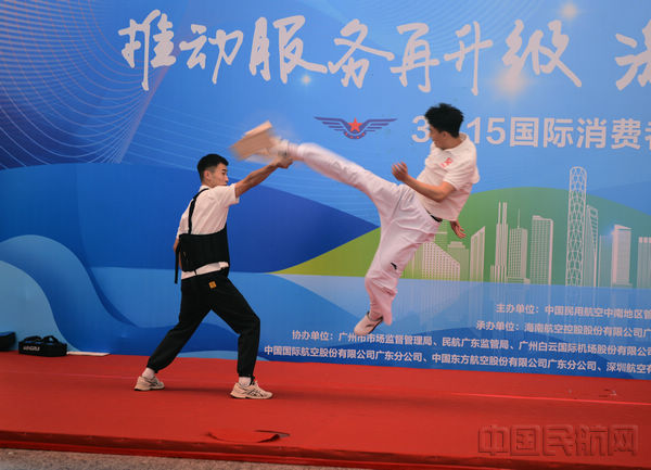 当天9时30分,海南航空安全员一套行云流水的技战术和武术动作展示拉开了活动的序幕,吸引了大量目光,旅客纷纷驻足观看。海南航空安全员展现了出色的身体素质和格斗技能,高度的警惕性和敏锐的洞察力。也正因此,在每次航班飞行中,他们能够迅速识别和应对各种安全威胁,在紧急情况下迅速采取行动,保护旅客的生命安全,确保旅客的合法权益得到保障。他们是空中秩序的保护者和捍卫者。