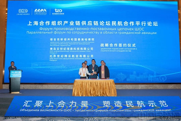 蒙古国通格航空有限公司、泛欧亚(青岛)航空科技发展有限公司签署了中蒙无人机运输网络项目协议,塔吉克斯坦共和国最高检察院、青岛云世纪信息科技有限公司、北京世纪翔云航空有限公司签署战略合作协议。