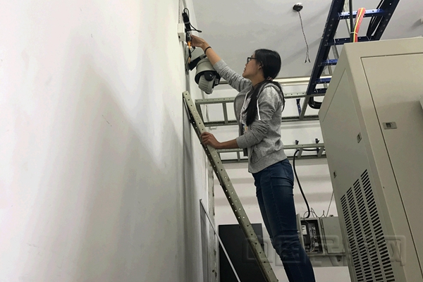 因库尔勒台站常年无专人值守,故于2016年在机房现场安装了监控摄像头,便于乌鲁木齐本部了解机房情况,更方便的值班和排故。通信室两名女职工作为"大漠飞鹰突击队"和"巾帼标兵示范岗"的成员,主动报名,奔赴库尔勒更换新的3G卡之后,四楼监控恢复正常,二楼监控由于机房没有窗户,关灯情况下几乎没有光线,但监控摄像头在黑暗环境中闪光灯并没有启动,两人当即决定取下摄像头一查究竟。由于摄像头位置比较高,且位于电信机房48V电瓶组上方,不好操作。最终找来院中快要废弃的梯子,小心翼翼将摄像头取下,发现感光元件正常,闪光灯由于在黑暗机房中24小时开启,早已损坏,为彻底排除隐患,将摄像头带回本部维修更换,尽快恢复监控。