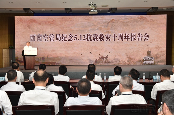 报告会上,西南空管局局长张勇代表局党委,重温了西南空管人的抗震救灾历程,总结了西南空管人一路走来的经验体会。张勇指出,抗震救灾工作是西南空管人意志品格的一次全面展现,是西南空管局应急动员的一次全面展现,是西南空管人奉献精神的一次全面展现,是空管系统协同优势的一次全面展现。他强调,抗震救灾经历在西南空管留下了宝贵的精神财富。西南空管人敢于担当,把党和人民的利益看得高于一切,毫不畏惧任何艰难险阻,勇敢扛起职责使命;西南空管人同心共进,为了共同的信念走到一起,朝着共同的目标凝心聚力,在前进的征途上携手奋进;西南空管人科学严谨,始终坚持实事求是,科学研判、科学决策、科学实施,一步一个脚印地稳步前行。他指出,十年间,西南空管人勇敢面对前进路上的每一次挑战,不断奋起,励精图治,百炼成钢,在安全管理水平、基础设施建设、综合保障能力、应急救援能力等各个方面,都取得了长足的进步,使西南空管局的面貌焕然一新,并在后来发生的“4.20”芦山地震、“8.8”九寨地震等历次重大自然灾害面前,显露出更高效的综合保障水平和强有力的快速反应能力。