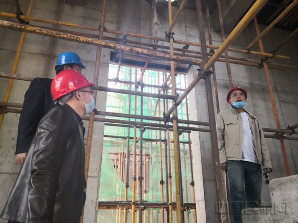 约10亩大的施工现场里已建起了一座10米多高的雷达塔、一幢综合业务用房和一排办公用房。随后,我们一行人艰难地登上了密密麻麻横竖绑扎在一起的钢筋塔体上,进行安全施工检查。随后,大家来到了办公用房内,对疫情防控措施和相关要求以及复工复产应急方案等台帐进行了细致的检查和提问。施工方和监理方负责人分别向我们介绍道,为了做好疫情防控工作,他们认真进行员工信息筛查,严格执行防疫措施,把好人员排查关、审核关、复审关等,做到“关口前移”,同时,制定了门禁管理、食堂就餐、消毒消杀、住宿管理等制度,严防病源外来输入、内部扩散。