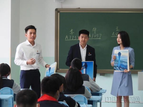 “飞机在天空中可以自由飞翔吗?”“什么是空中交通管制员的‘千里眼’和‘顺风耳’?” “飞机飞行到底是应该顺风还是逆风呢?”活动中,三位空管青年讲师分别从管制、通导和气象三个专业分别对空管知识进行了科普分享。一张张照片、一段段视频,丰富多样的实物模型,生动形象地为同学们分享了他们所感兴趣的空管知识。通过扮演“小小管制员”,模拟飞机起飞、降落阶段的管制指挥全过程,管制员李雨吟让同学们沉浸式的体验了管制员的日常工作;工程师安迪为同学们介绍了雷达和甚高频设备在空管保障中发挥了哪些重要作用;工程师李宁从影响飞行的气象要素、常见的气象设备等方面,深入浅出地为同学们介绍了气象因素对于航空安全的重要性。