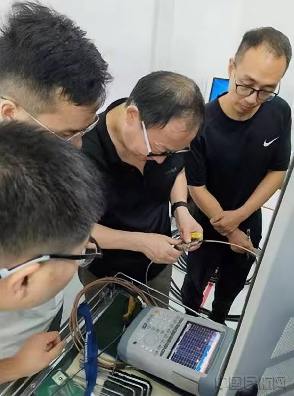 技术人员对甚高频设备进行信道频率转化工作(温州空管站供图)