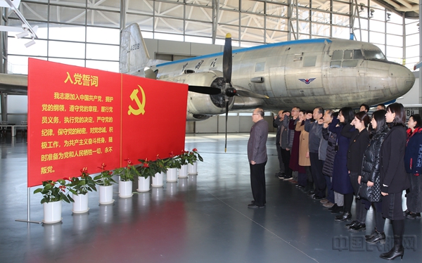 民航博物馆党委组织全体党员在主席专机前重温入党誓词(宋少龙/摄)