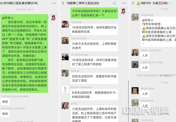 协同作战保效果。网络教学的一个关键点在于线上沟通顺畅有效,乘务学院辅导员通过建立班级微信群、钉钉群搭建学生与任课教师、班委与学生、辅导员与家长的沟通桥梁,凝聚“四方共建”力量,确保教学过程中实现及时、快速的联系。