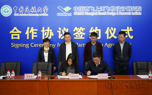 中国民航网 通讯员高远 报道:日前,中国民航大学与上海飞机设计研究院校企联合人才培养合作签约仪式在北教24-101报告厅举行。上海飞机设计研究院党委副书记刘树新、飞机气动能源工程技术所所长张春秀、创新谷推进办副主任霍西恒、教育培训中心副主任王俞波等一行,中国民航大学副校长吴仁彪、研究生院副院长洪振宇以及中欧航空工程师学院的师生代表出席签约仪式。