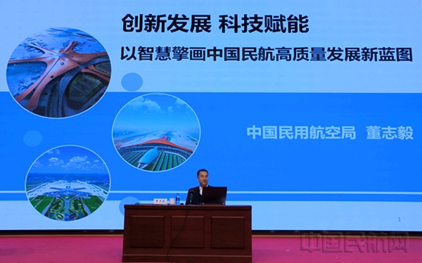 董志毅以“创新发展,科技赋能,以智慧擎画中国民航高质量发展新蓝图”为题,对中国民航发展现状和重要战略意义、智慧民航的提出、智慧民航在国内外的发展实践,以及对智慧民航发展问题的思考与展望,进行了详细的分析与探讨。他指出,加快建设智慧民航是实现交通强国民航新篇章的重要实践。我国确定把智慧民航建设作为民航行业“十四五”时期发展的主线,建成“透彻感知、泛在互联、智能协同、开放共享”的智慧民航体系。对民航业而言,需要从飞机制造到航班运行、从空中交通到地面保障、从组织管理到服务产品,全面顺应这一历史发展的潮流,努力探索一条智慧发展之路。
