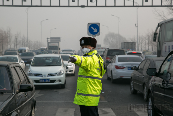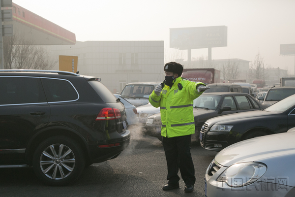 1月4日,受橙色预警雾霾天气影响,机场二高速往京平高速、六环路高速路口关闭,加之能见度低,车辆行驶缓慢,导致机场东路至四纬路出现严重拥堵。早8点00分,在接到拥堵警情后,交通支队立即调集除航站楼岗及勤务岗外所有值班备勤警力,分别在四纬三经、四纬四经、四纬五经、四纬六经、机场二高速上、下口设岗,全力开展指挥疏导。经过3个办小时的奋战,直至上午11时30分许,四纬路终于恢复畅通。
