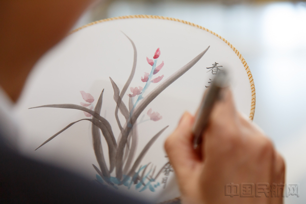 绘制团扇(张鹏/摄)
