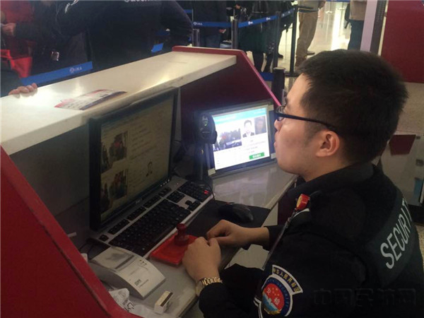 安检员利用人脸识别系统进行查验(郝佳/摄)