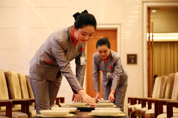 这种对细节的完美追求还体现在服务人员为代表委员们倒水的这件小事上。据工作人员介绍,服务人员在为代表委员倒茶时,只倒七分满。一方面,可以减少茶水的浪费;另一方面,从茶道上来说,留三分代表着对客人的敬意。但这并不意味着会降低代表委员们的服务感受,服务人员会通过巡视和留心观察的方式,及时为他们续水。