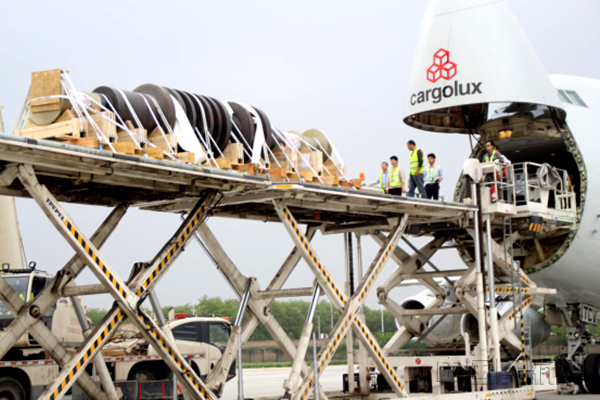 这是一台从欧洲进口的重型机械配件,单件装载重量高达34吨,由卢航空承运,自意大利米兰机场运抵郑州新郑国际机机场,由郑州机场执行货运全程保障。据悉,在国内同类机场当中,如此重的单件货物保障也属罕见,对郑州机场的现场保障设备及人员保障能力是一次巨大的挑战。通过此次货物保障,郑州机场向航空公司及货代企业展现了安全高效的保障能力,有力提升了郑州机场对外服务形象及核心竞争力。