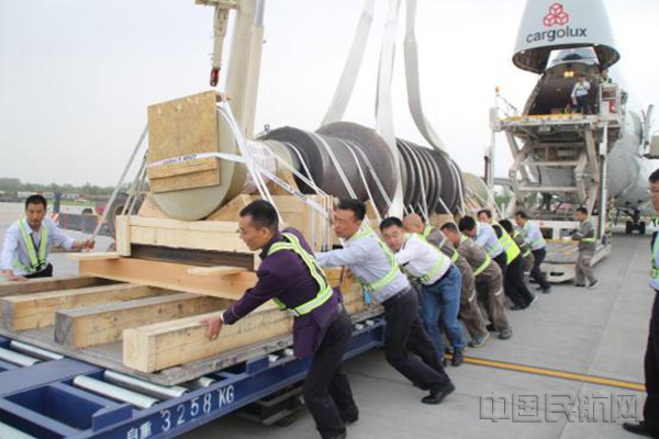 中国民航网 通讯员许宏宴、王丹 报道:几十吨不可拆卸的“大块头”,波音全货机也可以翻山越海长距离运输。4月19日,一架波音747全货机从意大利米兰机场缓缓降落在郑州新郑国际机场停机坪上,与其他货机不同的是,该货机机舱中是一个不可拆卸的“大块头”:这个进口的重型机械配件不但单件装载重量高达34吨,是郑州新郑国际机场开航以来首次用波音货机运输的最重货物,而且把这样一个庞然大物从货机上卸下来,在郑州机场也是第一次。