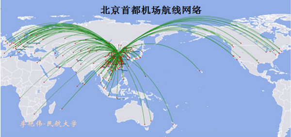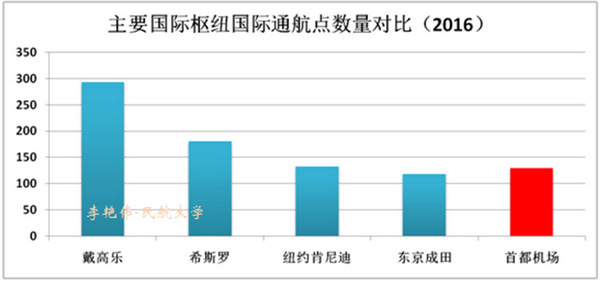 从网络覆盖范围看,首都机场与纽约肯尼迪机场、东京成田机场已不相上下,可以说已经具备国际航空枢纽的特征。