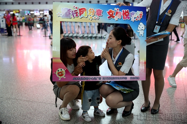 中国民航网 通讯员阿超 毛成山/摄 报道:6月1日,成都双流国际机场候管中心问广部与四川西南航空职业学院共同举办了一场主题为“童行同分享文明悦出行”的公益快闪活动,通过快闪舞蹈、“木头人”游戏的方式,为小朋友们送上一份六一儿童节礼物。