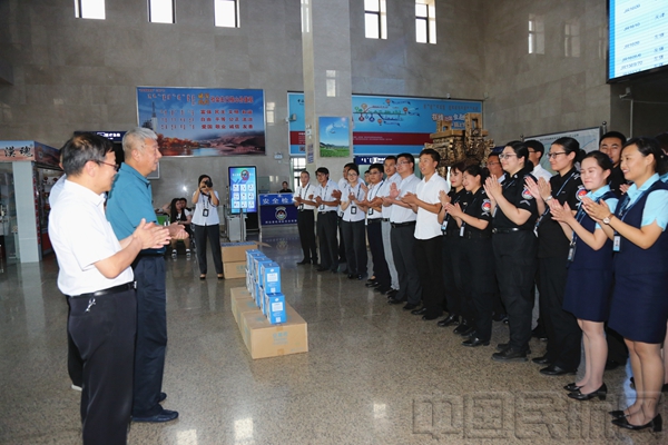 候机楼内,马正与航空安保部、地面服务部、飞行区管理部、航务保障部、机务保障部等部门的员工一一握手,向大家辛勤的工作与坚守的敬业精神表示感谢,并关切的嘱咐大家要注意防暑降温,科学合理的安排作息时间,继续发扬优良传统,保持好状态,传递正能量,为机场公司的安全运行保驾护航。