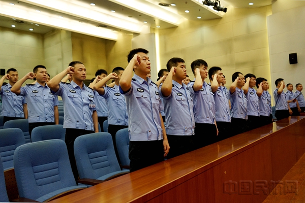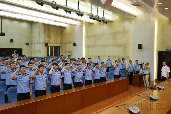 9时20分,宣誓仪式在雄壮的国歌声中拉开序幕。随后,在领誓人的带领下,2016、2017年新入警的34名民警集体进行了宣誓,宣誓人所在单位领导进行了现场观摩。