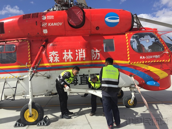 中国民航网 通讯员俞国瑞 报道:9月28日,富蕴可可托海保障中信海直通航驻场机务团队开展“卡-32”森林消防直升机的检护保养作业。