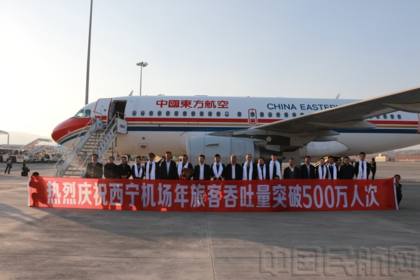 中国民航网 通讯员李泽中 报道:11月2日下午17时,由玉树飞来西宁的东方航空MU2314次航班平稳降落西宁机场,该航班上的旅客洛桑才仁幸运地成为了西宁机场2017年度第500万名旅客,这标志着西宁机场年旅客吞吐量有史以来首次突破500万人次。青海机场公司总经理魏博平为幸运旅客献上鲜花、哈达,在机坪上举行了简朴而热烈的庆祝仪式。