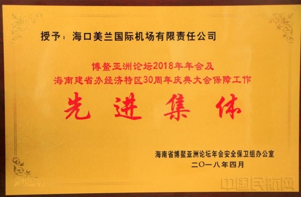 中国民航网 通讯员云蕾、钱坤 报道:近日,海南省公安厅警卫局(以下简称“警卫局”)特授予海口美兰国际机场(以下简称“美兰机场”)“博鳌亚洲论坛2018年年会及海南建省办经济特区30周年庆典大会保障工作先进集体”和“博鳌亚洲论坛安检人员培训基地”两项荣誉称号,该荣誉的获得,充分展现了美兰机场专业的保障能力、团队素养、军事化作风及五星服务品质。