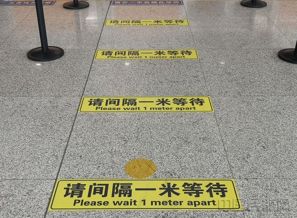有托运行李的旅客可以去人工柜台办理,为了避免旅客密集排队增加传播风险,柜台前划定多个“一米黄线”等候标识,提示旅客以安全距离排队,有效防范病毒传播。