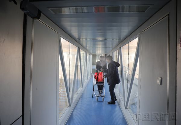 在登机口候机时,随处可见工作人员耐心细致的给电梯、扶手、门框进行消毒。据介绍,公共区域及附属设施每天要进行三次喷雾消毒。门把手、垃圾桶、洁具每小时都要消毒。此外,航站楼还延长了新风系统运行时间。