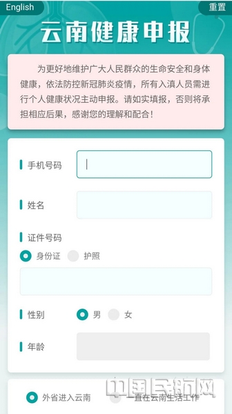 进入界面后,请根据您的情况,如实填写个人信息并点击提交后,您将会得到一张完成申报的“云南健康码”。