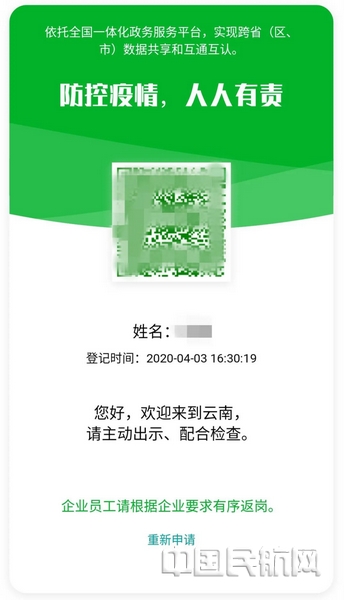 中国民航网讯:根据云南省委省政府应对新型冠状病毒感染肺炎疫情工作领导小组指挥部办公室第39号文件要求,自2020年4月3日20:00起,所有从昆明机场出发和到达的旅客及送行人员均须进行个人健康状况申报。请出行旅客预留充足时间前往昆明机场。