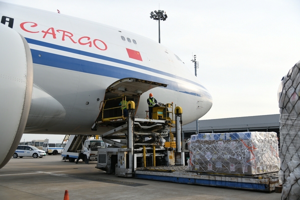 34板援非抗疫物资1小时内完成货机装载。上海机场供图