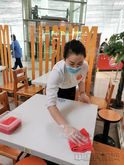 疫情防控期间,为确保旅客安心用餐,首都机场各餐饮店工作人员高度重视餐厅消毒工作。T3麦麦面店铺的工作人员,每天对地面消毒5次,总消毒面积达到1400平方米;每天累计擦拭1000次桌椅,日均接待旅客300人次。他们用自己的实际行动刷新了一个又一个抗疫数据,用被消毒水泡得发白脱皮的双手为旅客营造了安全放心的用餐环境。