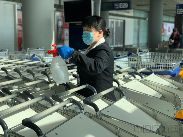 面对疫情,首都机场手推车的“24小时服务”并未退缩,手推车工作人员全力做好车辆消毒工作。T3手推车组长侯春华以身作则,每日往返于各车点之间,对车辆进行细致的消杀工作,回流的车辆做到“一客一消”,每日点位上车辆消毒不少于11次,T3手推车日消毒量多达42000车次。身处疫情防控一线,侯春平没有退缩,始终坚守在自己的岗位上,用实际行动筑起一道坚实的防疫安全线,温暖旅客出行路。