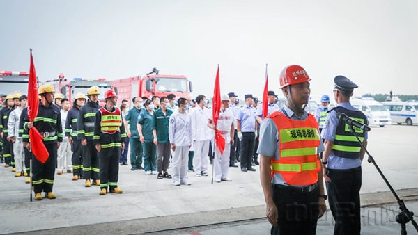 随着应急救援总指挥、通辽机场总经理赵玉的一声令下,通辽机场应急救援综合演练正式拉开序幕。