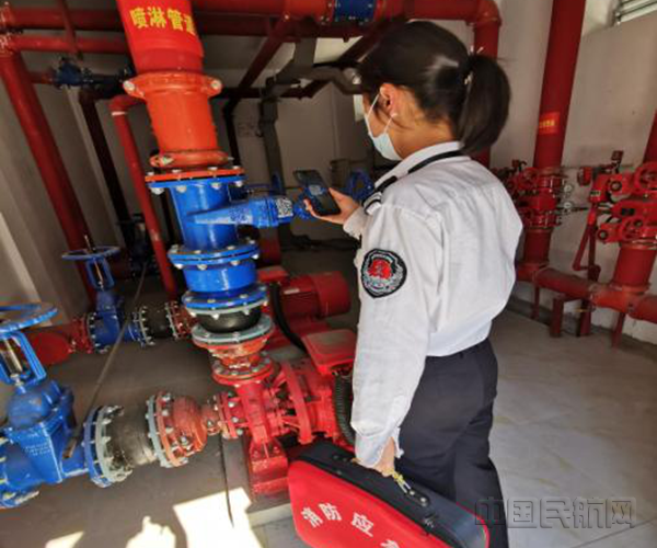 台州机场消控室值班员在使用消防自主APP开展高效巡查