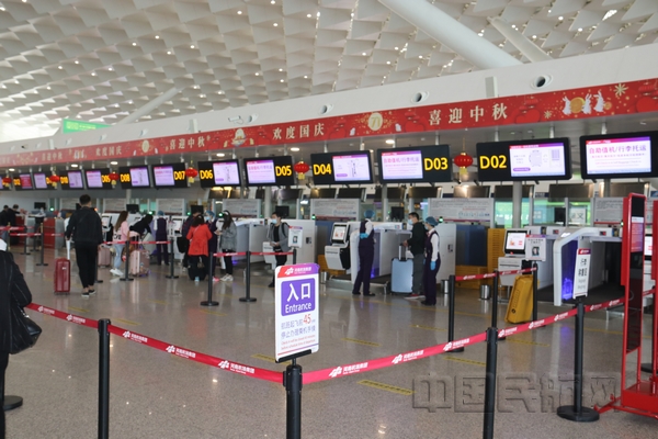 长假期间,郑州机场航站楼内国旗飘扬,各种绿植精心装点,菊花盛开在出发大厅,国庆和中秋佳节气氛浓厚,楼内各服务平台有序为成千上万的旅客提供出行服务。长假前三天,为集中出行高峰,单日执行航班均在600架次以上,平均每天发送旅客超过七万人次。长假中间三天,客流稍有回落,自10月7日开始,进入返程高峰,其中10月7日郑州机场执行航班再次冲高到600架次,达到608架次,长假最后一天,将执行航班604架次,比国庆中段增加二十多个航班,初步统计,此次国庆中秋佳节期间,郑州机场累计发送旅客将超过60万人次。客流主要以探亲、旅游为主,中长距离及旅游城的航班受青睐。