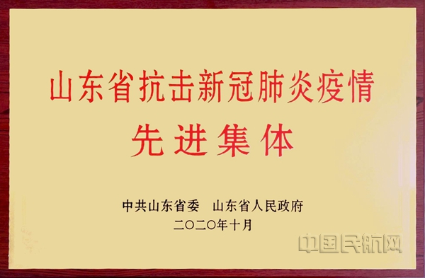 《中国民航报》、中国民航网记者许晓泓 通讯员王淑慧报道:11月11日,山东省抗击新冠肺炎疫情表彰大会在济南召开,对抗击新冠肺炎疫情作出突出贡献的先进个人、先进集体、优秀共产党员、先进基层党组织进行表彰,济南机场党委荣获“山东省先进基层党组织”和“山东省抗击新冠肺炎疫情先进集体”称号。