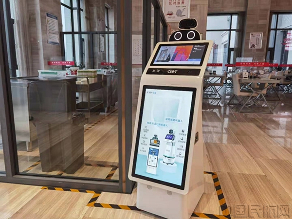 图:呼和浩特机场职工餐厅入口处的智能测温机器人(本文图片均由张彦平摄)