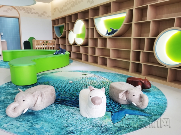 新投入的母婴候机室分别位于25、26号登机口旁,除了开放式设计之外,还在门口放置了“鹿宝宝”公仔,便于识别。母婴候机室设计理念源自中国最古老的神话传说书籍——《山海经》,壁纸、彩绘采用的鱼纹图案,既有多子多孙的寓意,也有父母对孩子鲤鱼跳龙门的美好期盼,其色彩搭配来自法国特色美食“马卡龙”色系,每个母婴候机室结合区域环境选定一个主题色,让孩子们带来愉悦的候机体验。