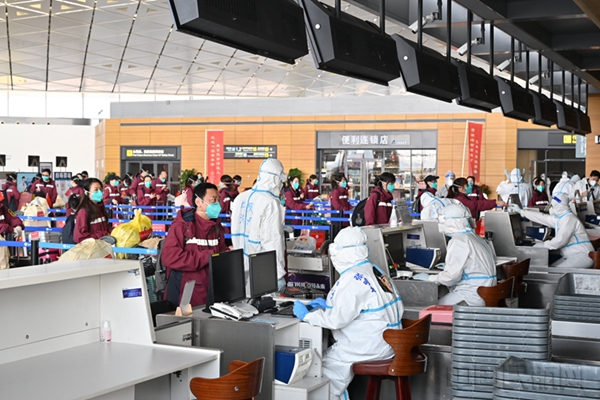 长春机场高度重视本次返程医疗队员包机保障任务,接到信息后,组织各单位对每个保障环节进行了再动员、再细化、再梳理、再落实。各保障单位迅速响应,针对本次运送医务人员的江西航空、南方航空及国航三个航班分别量身制定了保障方案。考虑到当日本场大风天气,长春机场为三架包机优选了最佳机位,方便各省白衣天使顺畅登机。