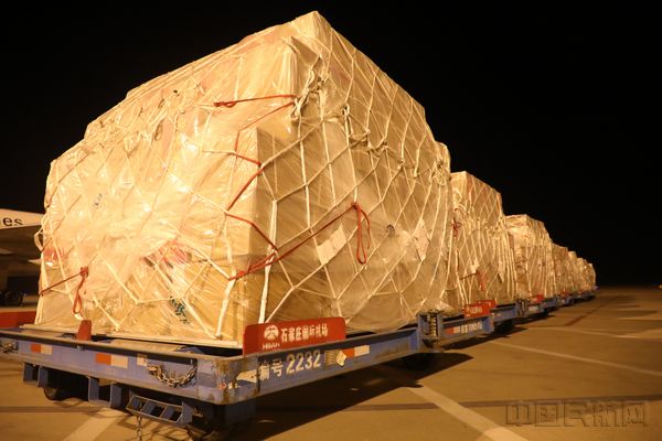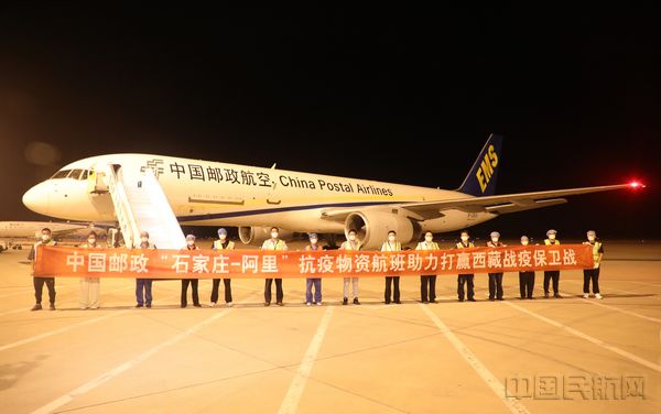 8月20日凌晨4时27分,邮政航空公司CF9127机型为B757-200的货机满载有18.8吨抗疫物资顺利从石家庄机场起飞,前往西藏阿里。物资主要包含核酸检测仪、防护服、口罩、隔离衣以及各类防疫药品等,共计1706件、18857Kg。