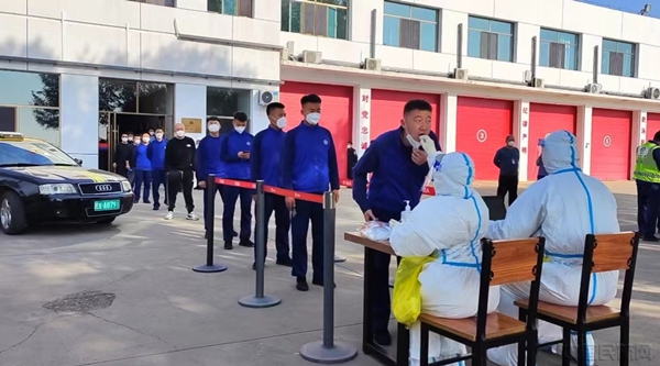 动态流动工作人员正在为消防队集中住宿人员进行核酸检测