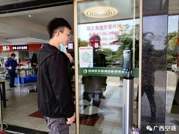 中国民航网 通讯员吴宇坤、蒋思恩 报道:“滴~”“体温正常”“绿码请通行”。近日,桂林机场办公楼、餐厅、员工通道等8处公共区域入口加装了具有智慧防疫功能的“电子哨兵”,员工经过健康码核验和测温正常后即可通行,全程快捷无接触。