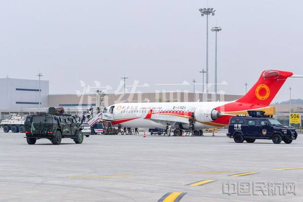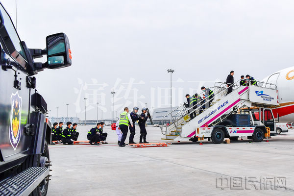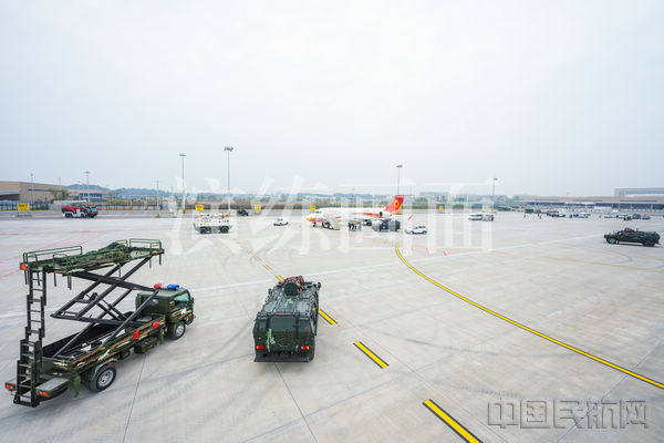 此次演练紧贴民航西南地区安保应急工作特点,采用“挤压空间、模拟实战;缩短时间、体现进程;协同演示、检训合一”和红蓝实兵对抗的模式,对想定的“航空器在机坪遭遇劫持事件”进行全流程、全要素仿真处置。演练深度还原航空安保应急类突发事件的复杂性,结合机场、航司及军地各应急处突力量的工作实际,重点研训新形势下反劫机行动的联合指挥、战法运用、力量协同等内容,共设置7个主科目,包含信息通报、现场控制、集结增援、安保处置、突击救援、救治转送等44个子课目,累计投入武警、公安、消防、医救等处置人员500余名,出动国产ARJ21飞机1架、各类专业救援车辆120余辆。