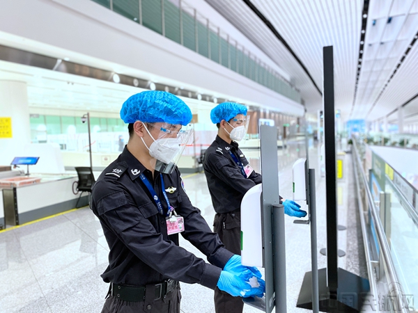 “中国的抗疫斗争,充分展现了,中国精神、中国力量、中国担当。”作为守卫“新国门”的主力军,大兴机场分公司严格落实,国务院疫情防控相关要求和北京市联防联控规定,通过现场督导、视频监察等形式监督员工严格落实“一检一消”“各区域定点消杀”“旅客一米间距”“不见面交接班”等疫情防控操作标准;设置专人督导对每日工作进行复盘和总结完善,确保最大力度阻断传播风险,为大兴机场疫情防控工作奠定了坚实基础。