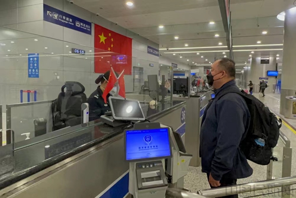 新政后首批旅客由浦东机场口岸入境(上海边检总站提供)