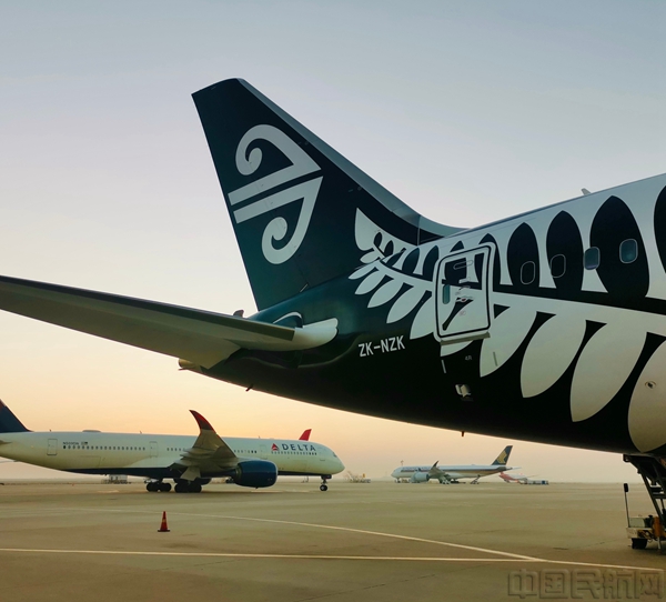 新政之后首班飞抵浦东机场的新西兰航空航班(新西兰航空供图)