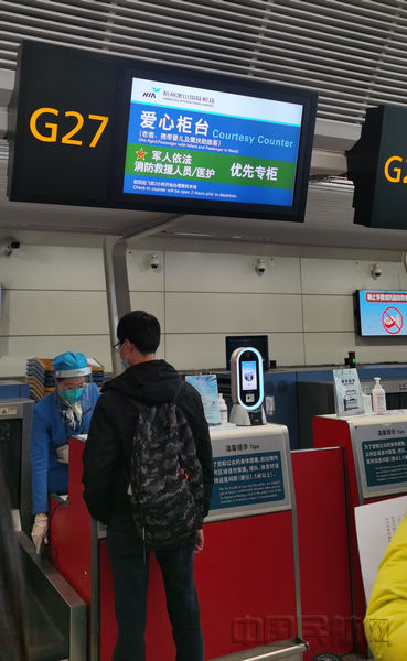 《中国民航报》、中国民航网 记者赵瑜 通讯员施东杰 报道:1月10日,杭州萧山区第一人民医院儿科医生程德勇准备搭乘海南航空的HU7394前往深圳。在值机时,被告知有一个“医护人员”优先的专用通道,“觉得很惊喜,也挺意外。”程德勇说。为致敬医护工作者,从1月10日起,杭州机场开辟“医护人员”优先通道,为医护人员提供更加便捷、温馨的乘机体验。医护人员可凭医护卡或相关工作证件在杭州机场享受优先值机、安检及登机服务,切身感受到社会各界对他们的尊重和回馈。