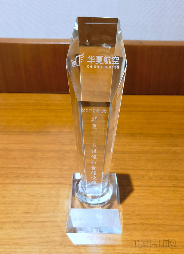 中国民航网 通讯员薛彩平 报道:近日,张家口机场收到华夏航空奖杯,机场航站楼管理部荣获华夏航空“2022年度最佳运行合作伙伴”。
