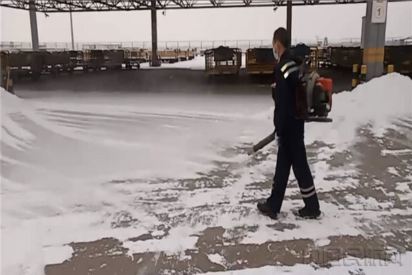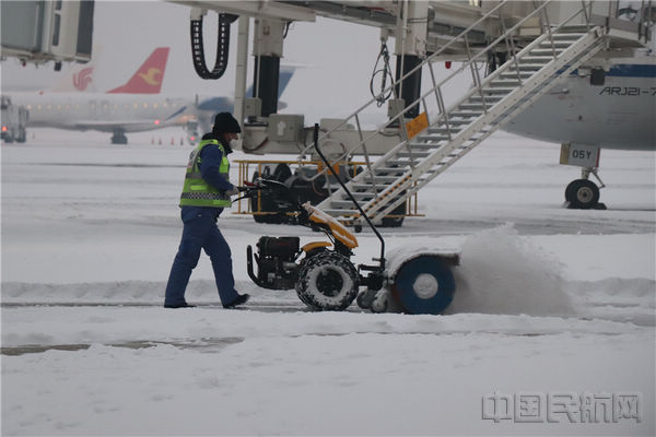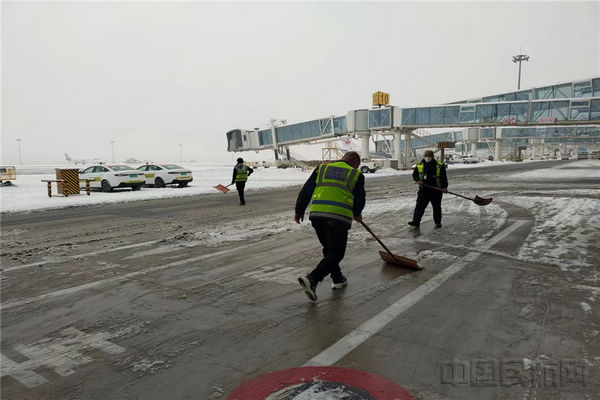 货运库区做好积雪扫除工作。(中国民航网 通讯员韩羚 拍摄:杨春雨、周广龙、金鑫鑫、张金凤摄)